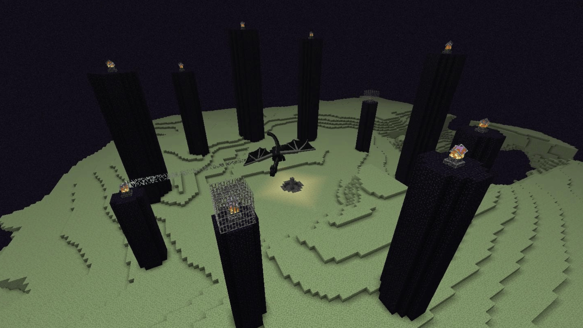Essa dimensão é composta principalmente de vastas ilhas flutuantes feitas de End Stone, suspensas em um vazio aparentemente infinito. A ilha central é o coração do The End, onde o Ender Dragon aguarda, protegido por altos pilares de obsidiana que sustentam cristais de cura. O confronto com o dragão é um dos maiores desafios de Minecraft, exigindo estratégia e habilidade para destruir os cristais e derrotar a criatura.